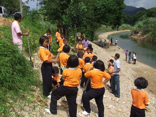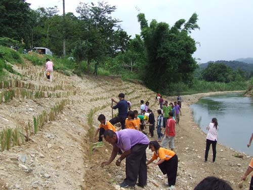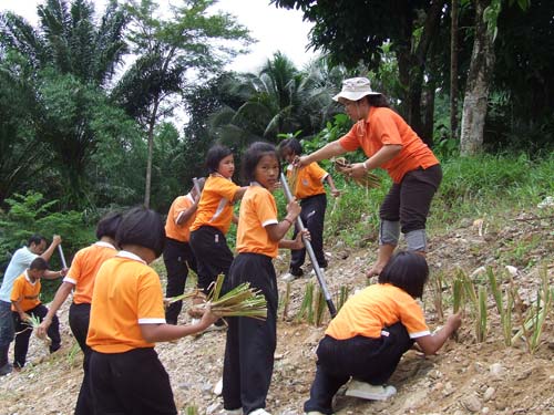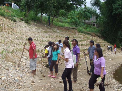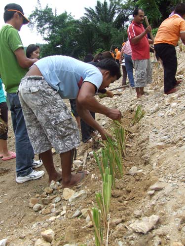กิจกรรมปลูกหญ้าแฝก ภาพกิจกรรมปลูกหญ้าแฝก ป้องกันหน้าดินสไลด์ ..โดยองค์การบริหารส่วนตำบลรมณีย์