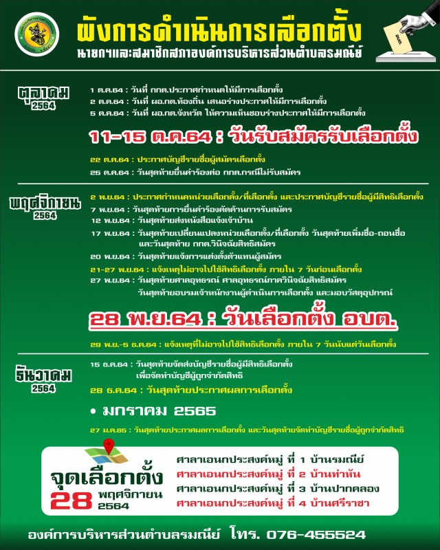 ผังการดำเนินการเลือกตั้ง นายกฯและสมาชิกสภา อบต.รมณีย์