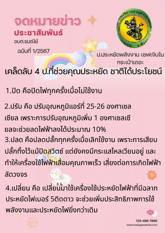 จดหมายข่าว ประชาสัมพันธ์ รณรงค์การประหยัดพลังงาน และส่งเสริมการใช้อุปกรณ์ประหยัดพลังงาน