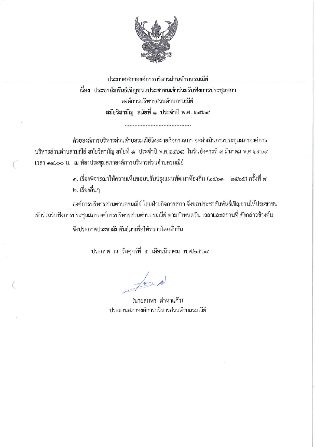 ประชาสัมพันธ์เชิญชวนประชาชนเข้าร่วมรับฟังการประชุมสภาองค์การบริหารส่วนตำบลรมณีย์ สมัยวิสามัญ สมัยที่ 2 ประจำปี พ.ศ. 2564