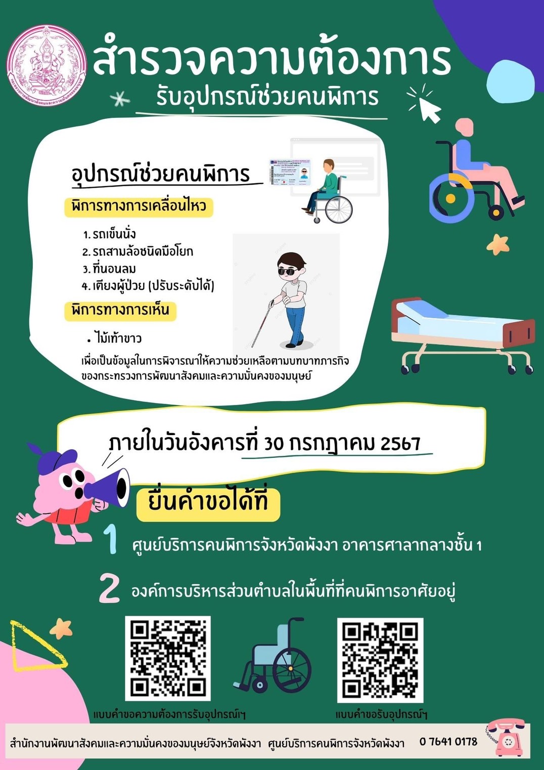 ประชาสัมพันธ์สำรวจความต้องการรับอุปกรณ์ช่วยคนพิการ ประจำปี 2567