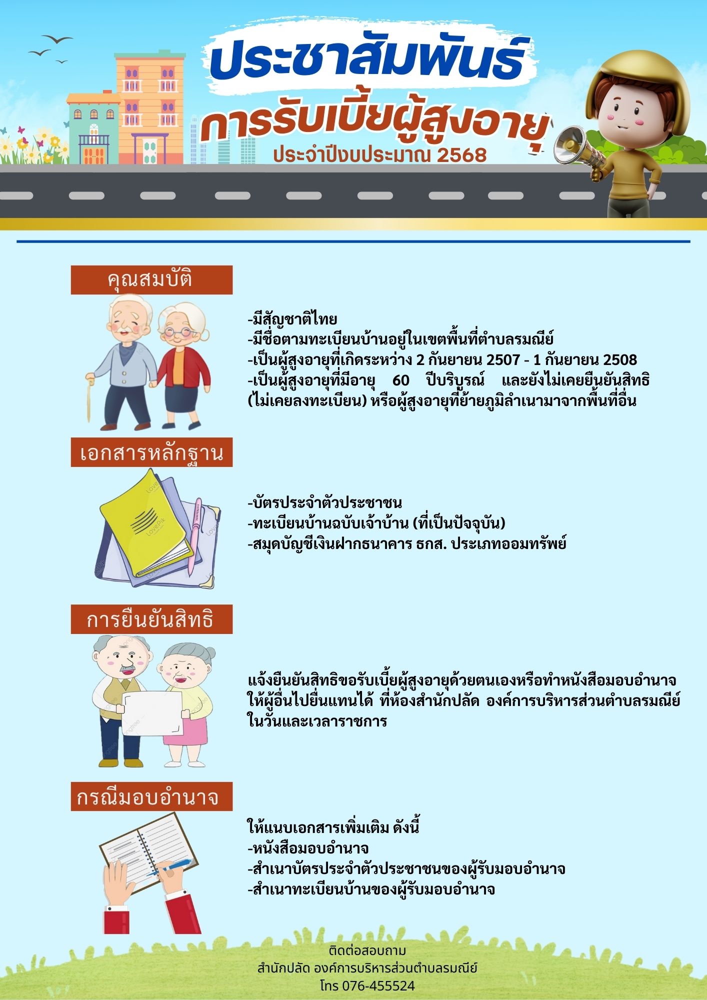 ประชาสัมพันธ์การรับเบี้ยผู้สูงอายุ ประจำปีงบประมาณ 2568