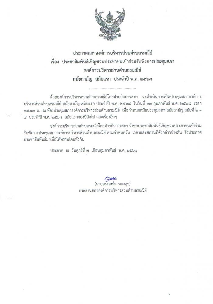 +001 ประกาศสภาองค์การบริหารส่วนตำบลรมณีย์ เรื่อง ประชาสัมพันธ์เชิญชวนประชาชนเข้าร่วมรับฟังการประชุมสภาองค์การบริหารส่วนตำบลรมณีย์ สมัยสามัญ สมัยแรก ประจำปี 2568 // 7 ก.พ.2568