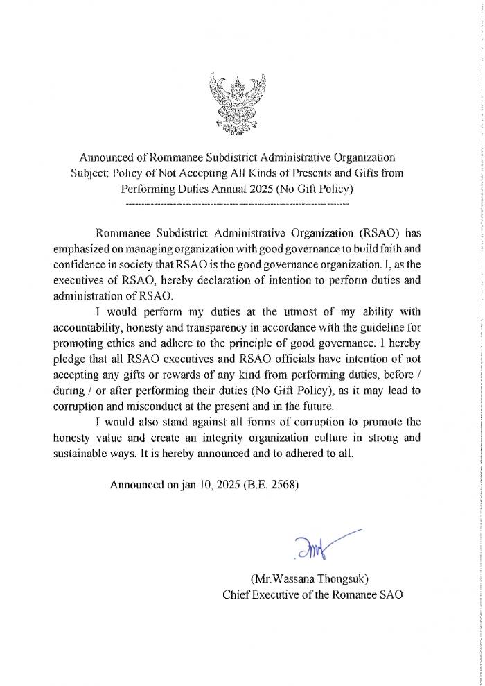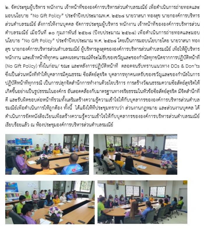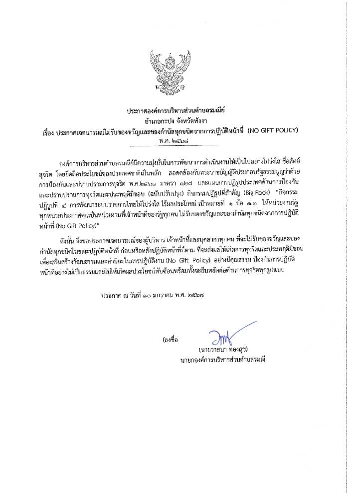 o21 ประกาศเจตนารมณ์และการสร้างวัฒนธรรมตามนโยบาย No Gift Policy จากการปฏิบัติหนาที่