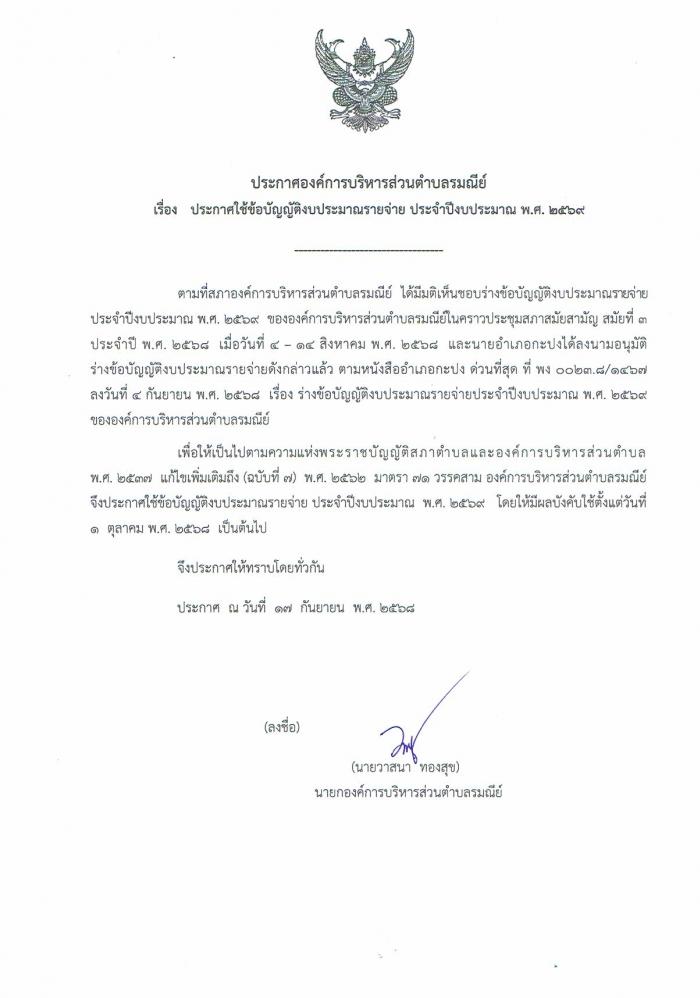 ประกาศองค์การบริหารส่วนตำบลรมณีย์ เรื่อง ประกาศใช้ข้อบัญญัติงบประมาณรายจ่าย ประจำปีงบประมาณ พ.ศ. 2569 17 กย 69