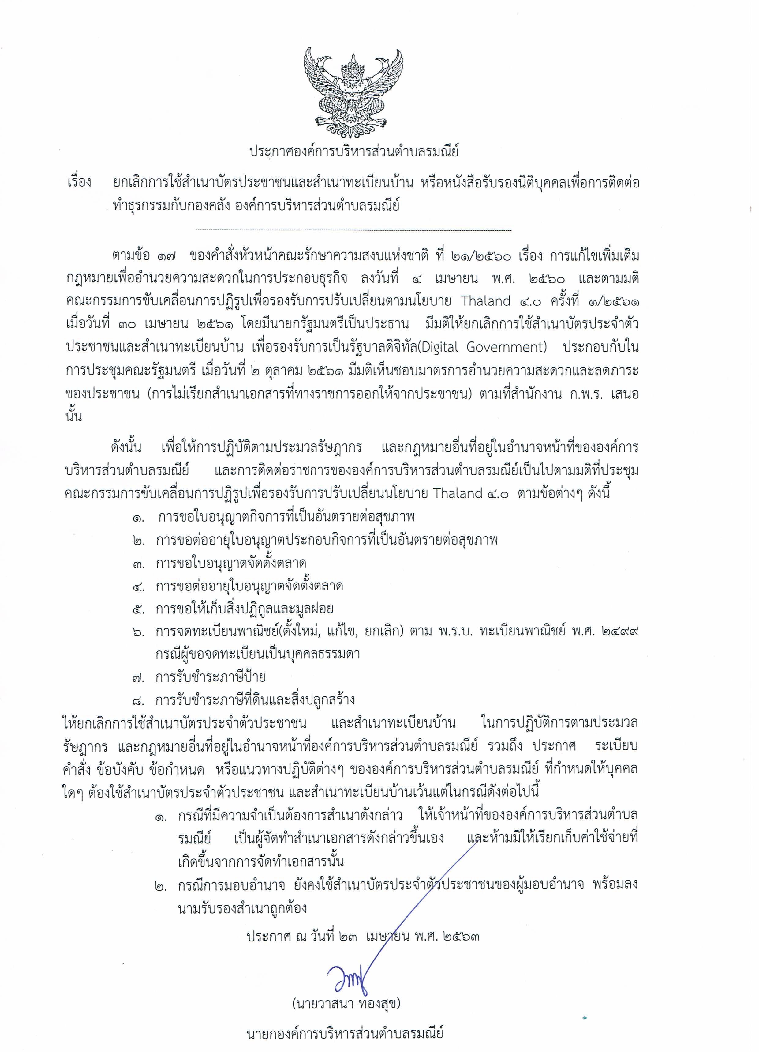 ยกเลิกการใช้สำเนาบัตรประชาชนและสำเนาทะเบียนบ้านเพื่อลงทะเบียนและยื่นคำขอรับเบี้ยยังชีพฯ