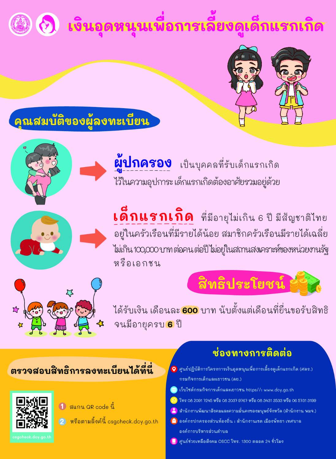 ประชาสัมพันธ์การลงทะเบียนเพื่อขอรับสิทธิเงินอุดหนุนเพื่อการเลี้ยงดูเด็กแรกเกิด ปีงบประมาณ 2567