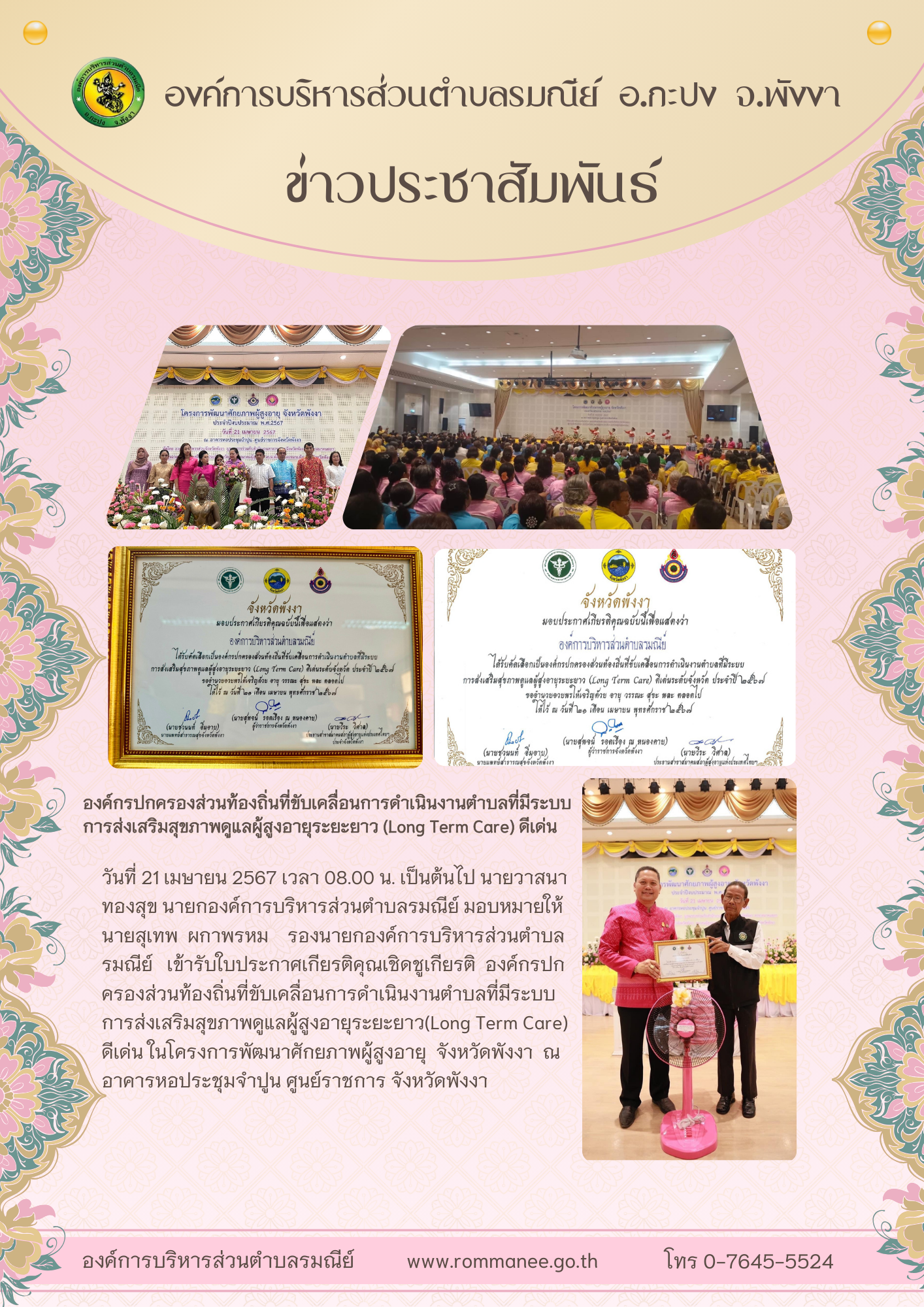 ประชาสัมพันธ์องค์กรปกครองส่วนท้องถิ่นที่ขับเคลื่อนการดำเนินงานตำบลที่มีระบบ LTC ดีเด่น