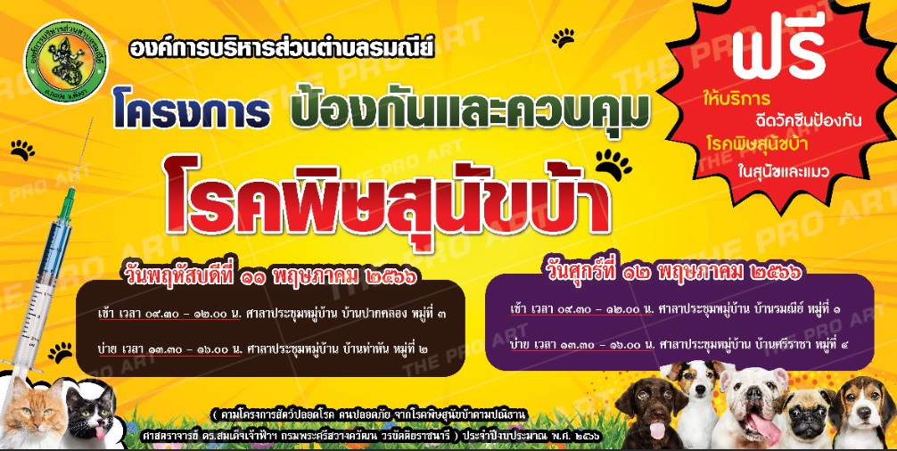 กำหนดการ โครงการป้องกันและควบคุม โรคพิษสุนัขบ้า