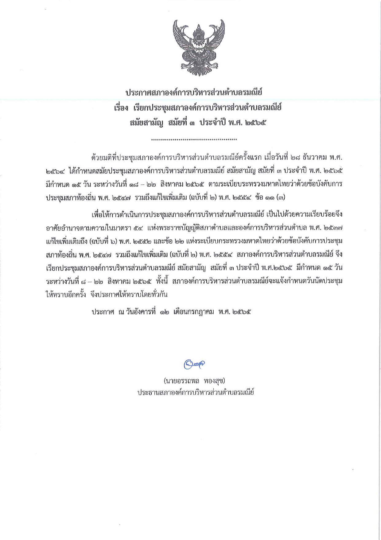 ประกาศสภาองค์การบริหารส่วนตำบลรมณีย์ เรื่อง เรียกประชุมสภาองค์การบริหารส่วนตำบลรมณีย์ สมัยสามัญ สมัยที่ 3 ประจำปี พ.ศ.2565