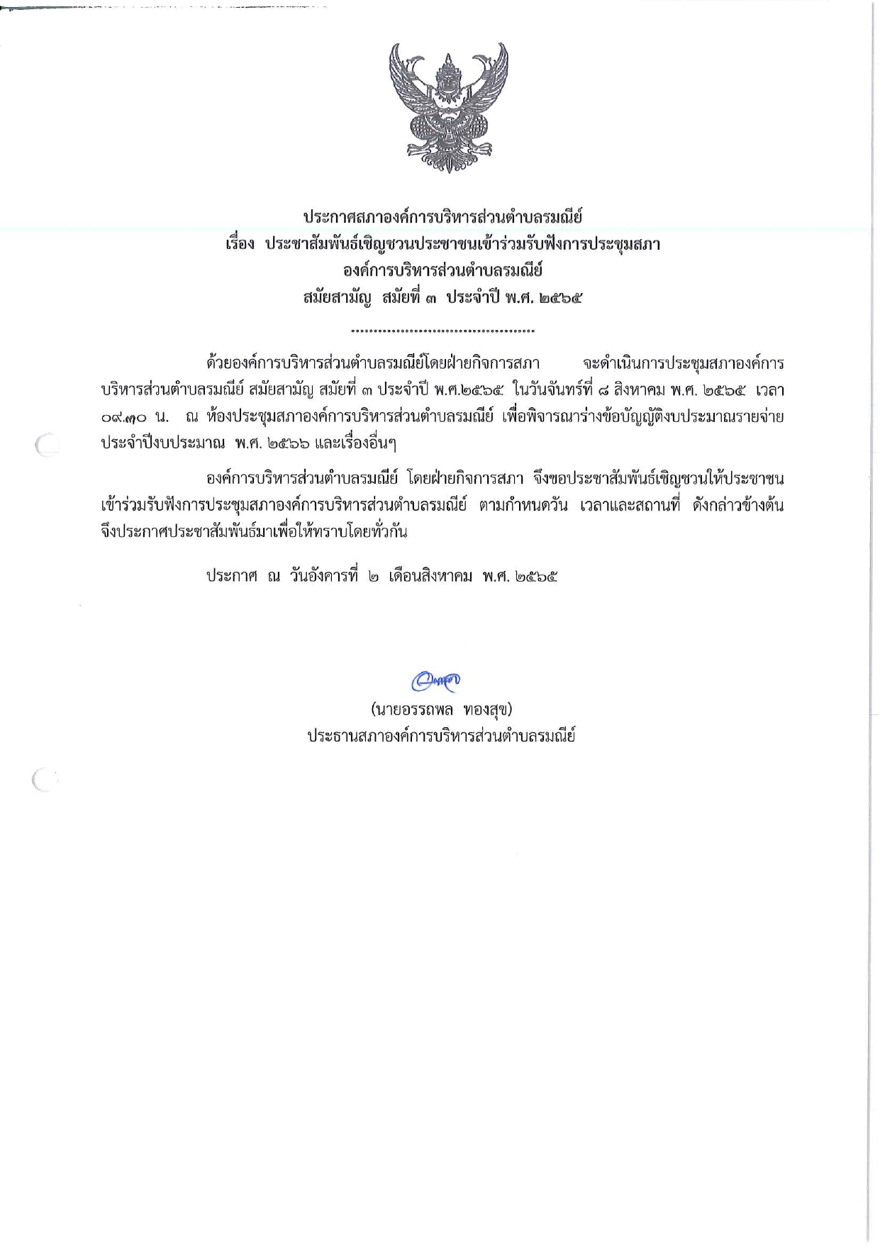 ประกาศสภาองค์การบริหารส่วนตำบลรมณีย์ เรื่อง ประชาสัมพันธ์เชิญชวนประชาชนเข้าร่วมรับฟังการประชุมสภาองค์การบริหารส่วนตำบลรมณีย์ สมัยสามัญ สมัยที่ 3 ประจำปี พ.ศ.2565