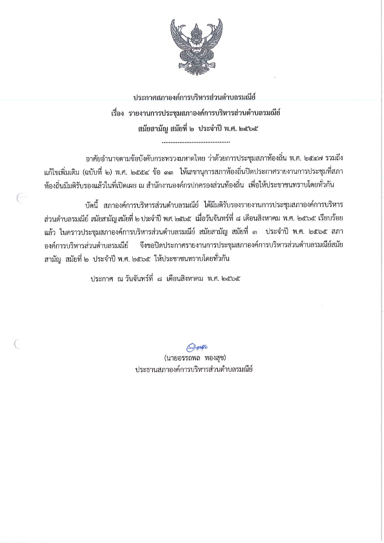 ประกาศสภาองค์การบริหารส่วนตำบลรมณีย์ เรื่อง รายงานการประชุมสภาองค์การบริหารส่วนตำบลรมณีย์ สมัยสามัญ สมัยที่ 2 ประจำปี 2565
