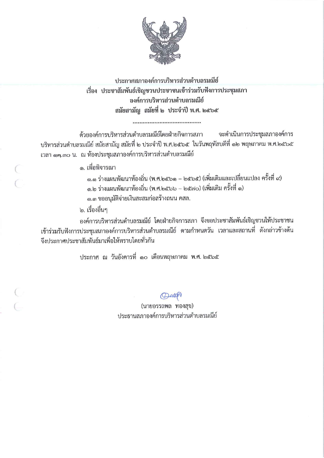 ประกาศสภาองค์การบริหารส่วนตำบลรมณีย์ เรื่อง ประชาสัมพันธ์เชิญชวนประชาชนเข้าร่วมรับฟังการประชุมสภาองค์การบริหารส่วนตำบลรมณีย์ สมัยสามัญ สมัยที่ 2 ประจำปี พ.ศ.2565